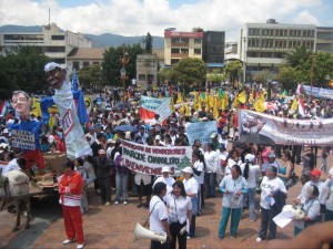 De esta forma el Gobierno busca acallar la inconformidad del pueblo Colombiano ante las grandiosas movilizaciones del pasado 7 de abril, y el Primero de Mayo con la participación de mas de 1.000.000 de personas en rechazo a la política neoliberal y a la aprobación del Plan Nacional de Desarrollo del Gobierno de Santos que privatiza la Educación Publica, la Salud, entrega del Patrimonio Nacional a las multinacionales, rebaja los impuestos a los poderosos y descarga la crisis capitalista a los trabajadores mediante flexibilidad laboral, desempleo y bajos salarios, estimula el gasto militar y promueve afanosamente la firma del Tratado de Libre Comercio con Estados Unidos, a la par que entrega la Soberanía mediante la presencia de tropas norteamericanas e israelíes en Colombia, con lo cual profundiza un modelo de desigualdad y represión e impiden la Solución Política al Conflicto Interno que padecemos hace mas de medio siglo.