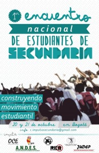 Como estudiantes de secundaria, somos conscientes de la necesidad de luchar por una educación pública, gratuita, de calidad y al servicio del pueblo colombiano, una educación que sea en realidad un derecho para todos y todas, que no se convierta en un privilegio para unos pocos. Es por esto que este Encuentro Nacional de Secundaria
