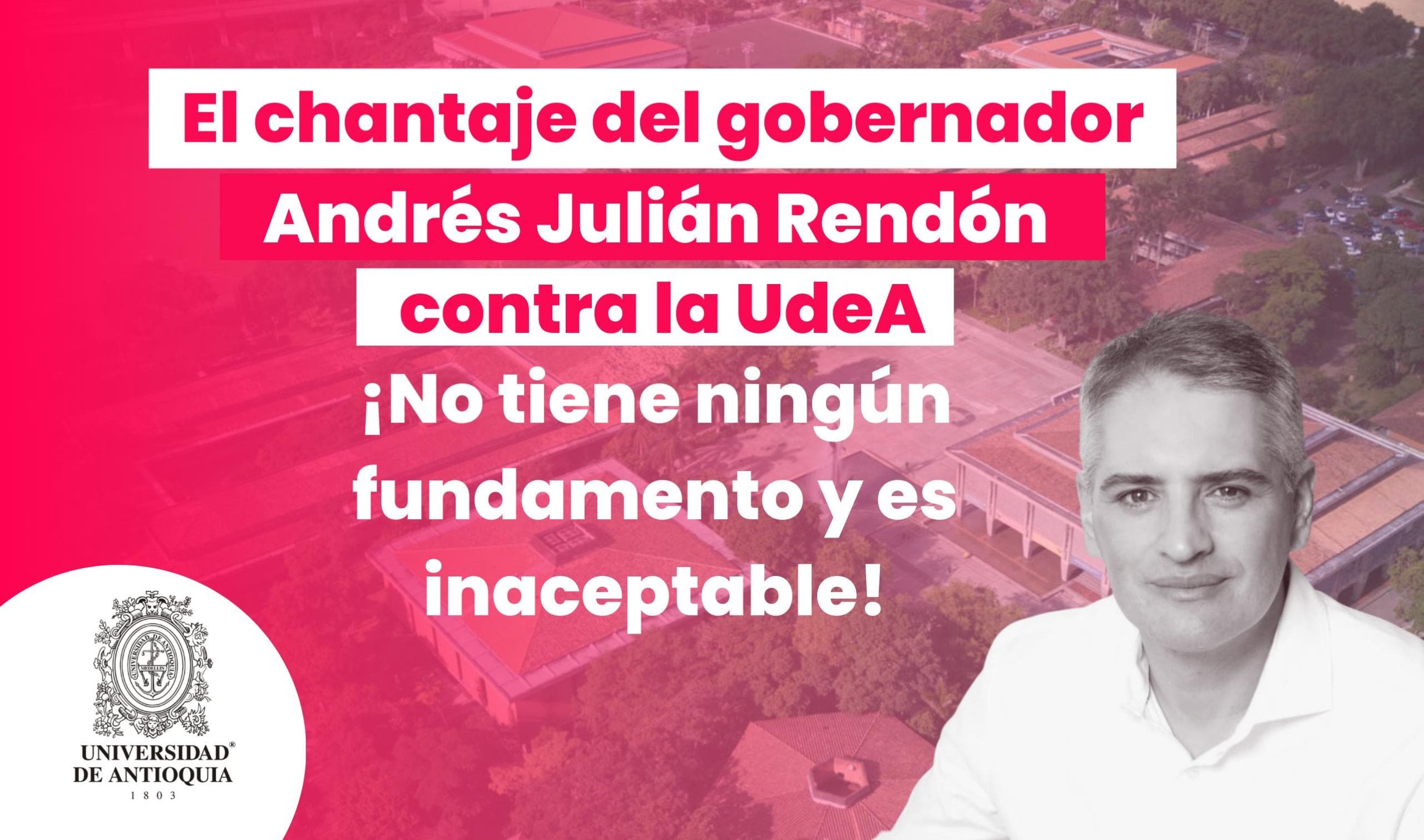 El chantaje del gobernador Andrés Julián Rendón contra la UdeA no tiene ningún fundamento y es inaceptable.